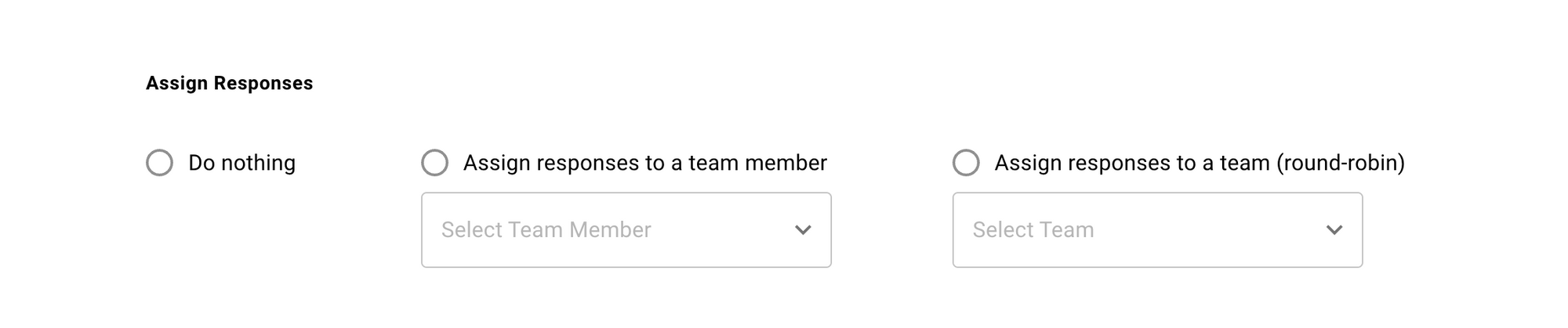 (Optional) If you would like to automatically assign all customers who respond to a campaign to a specific team member or team, click Assign responses to a team member or Assign responses to a team (round-robin). Then, in the drop-down, select the team member or team you would like to assign all responses from the campaign.